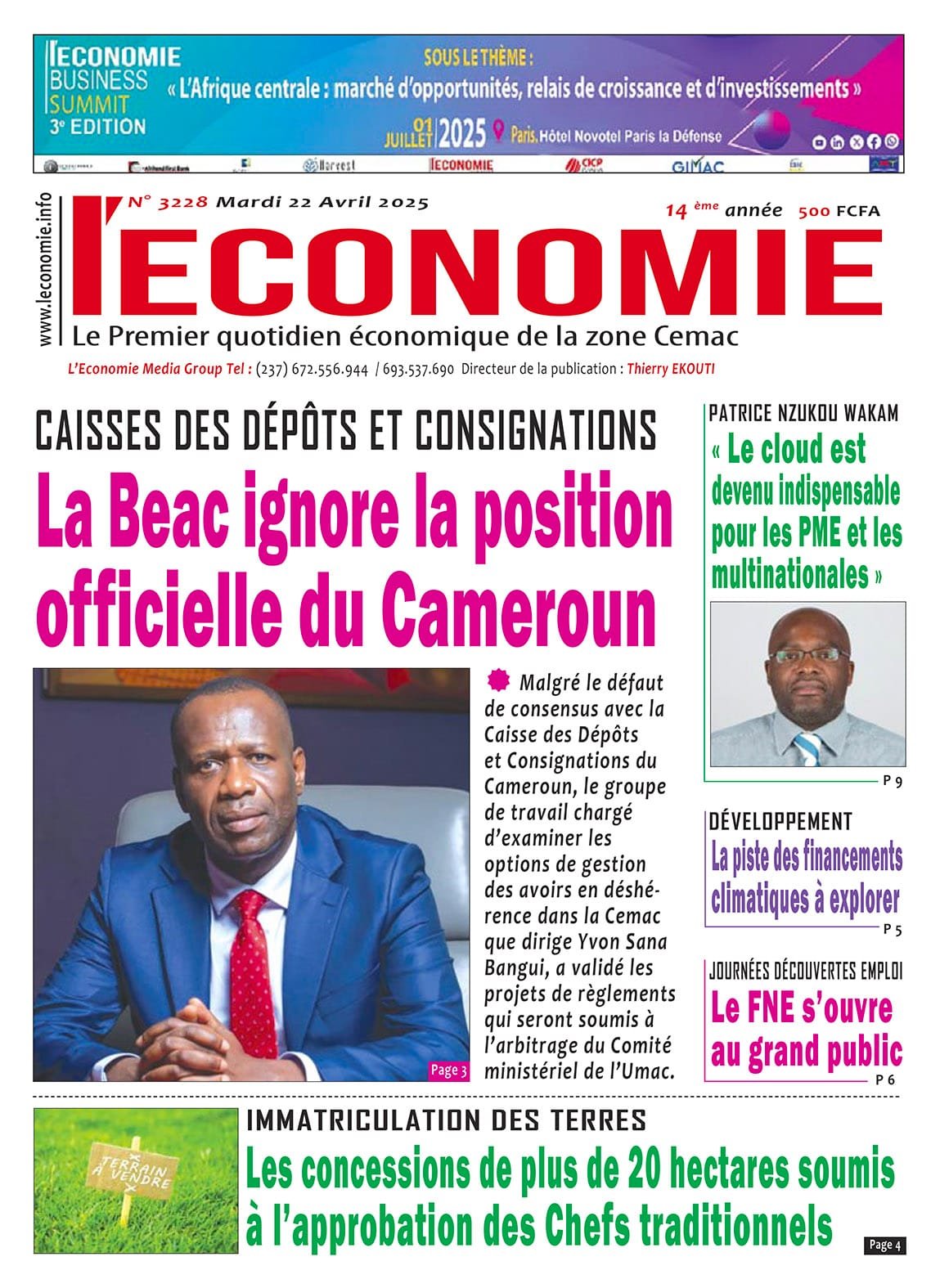 N°3228 du journal L’Economie du Mardi 22 Avril 2025