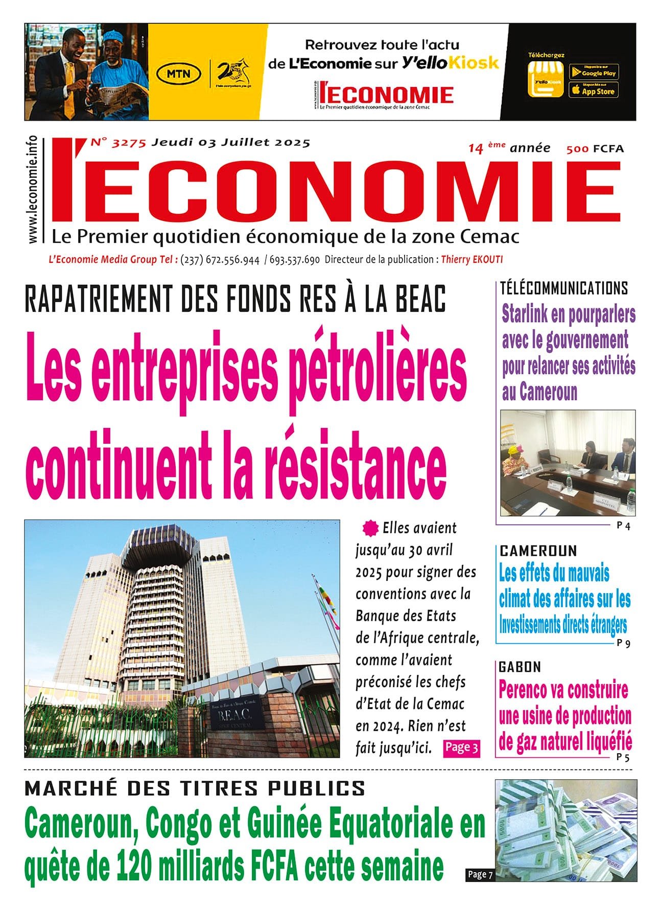 N°3275 du journal L’Economie du Jeudi 03 Juillet 2025