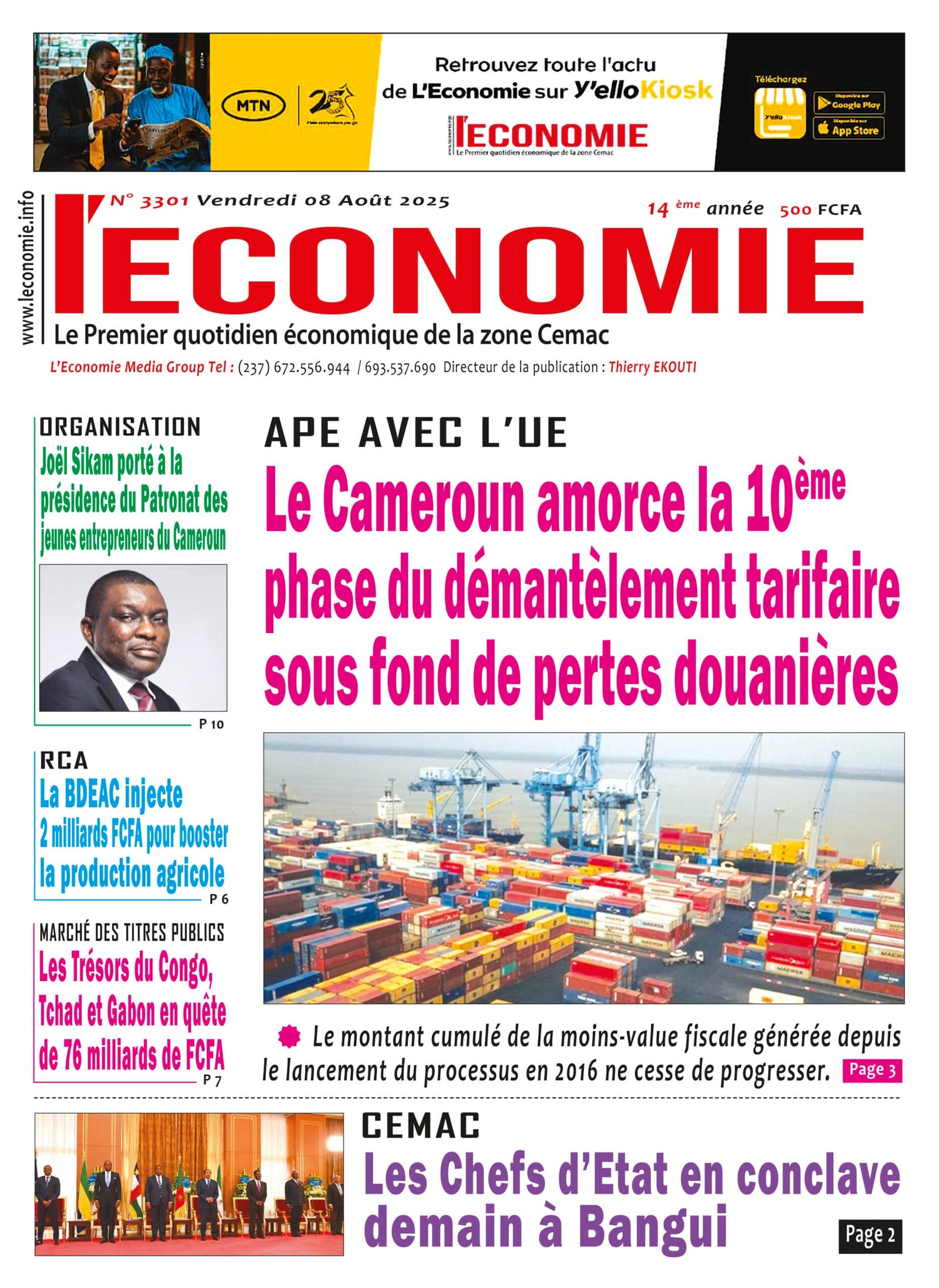 N°3301 du journal L’Ecnomie du Vendredi 08 Août 2025